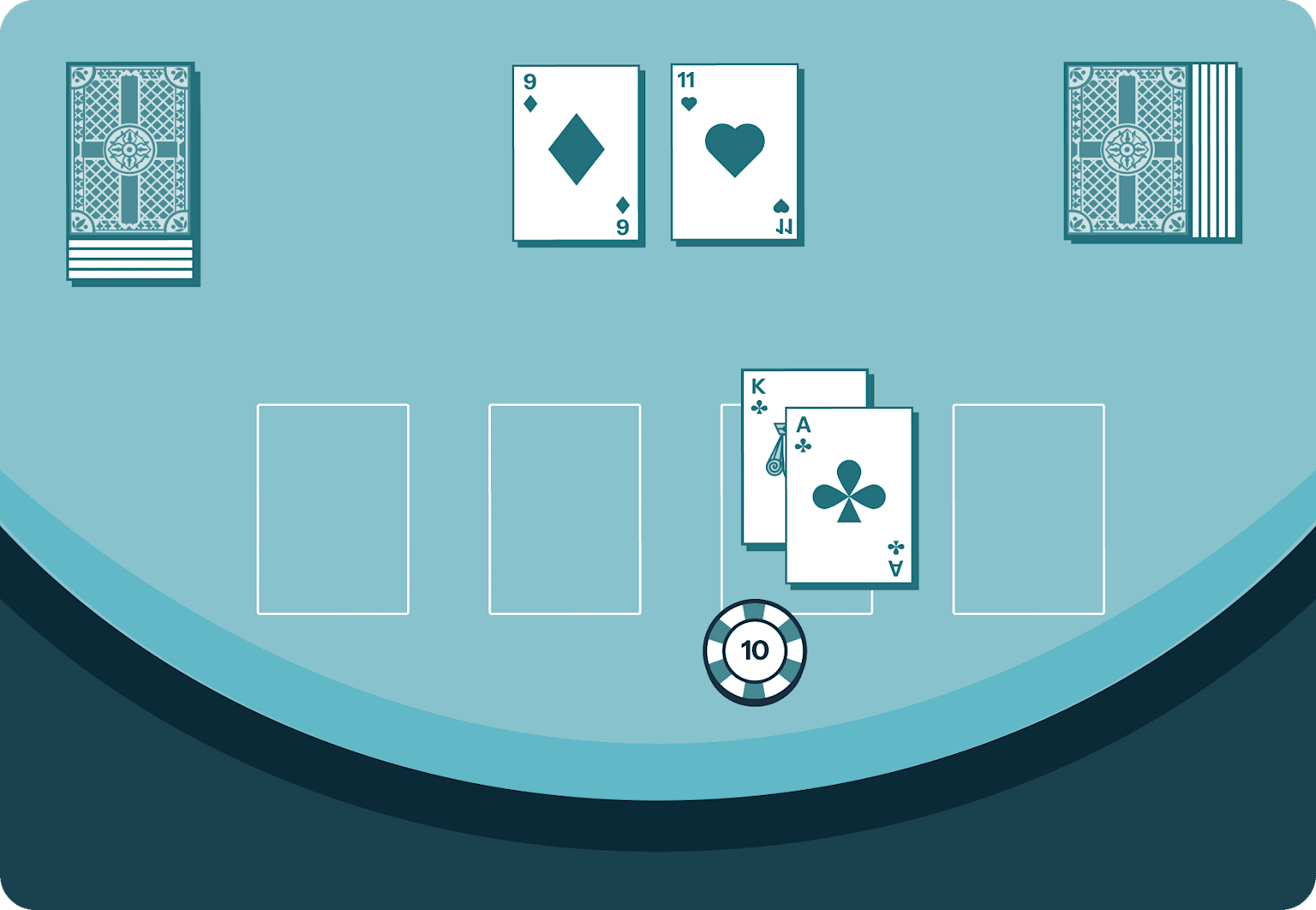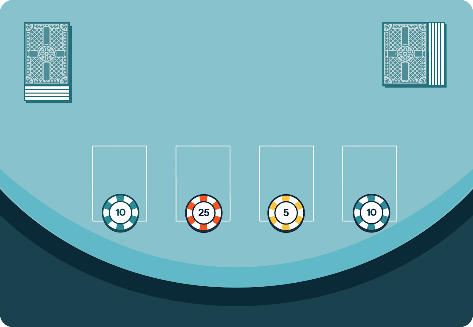 Einsatzfelder (Betting Spots): Hier platzierst du deine Chips. Damit fixierst du deinen Einsatz, bevor du deine Karten bekommst.